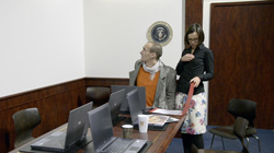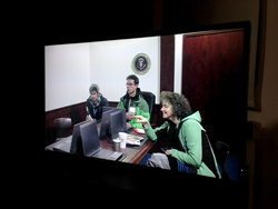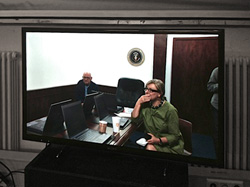 Eine fest installierte und dauerhaft laufende Videokamera filmt die begehbare Raumkulisse exakt in gleichem Ausschnitt und gleicher Perspektive wie es Pete Souza tat. Die Kamera überträgt ihr Bild in Echtzeit auf eine Leinwand oder einen Flatscreen an gleichfalls genau jener Stelle im Raum, an der die US-Regierung im echten Situation Room die Tötung von Bin Laden verfolgen konnten.